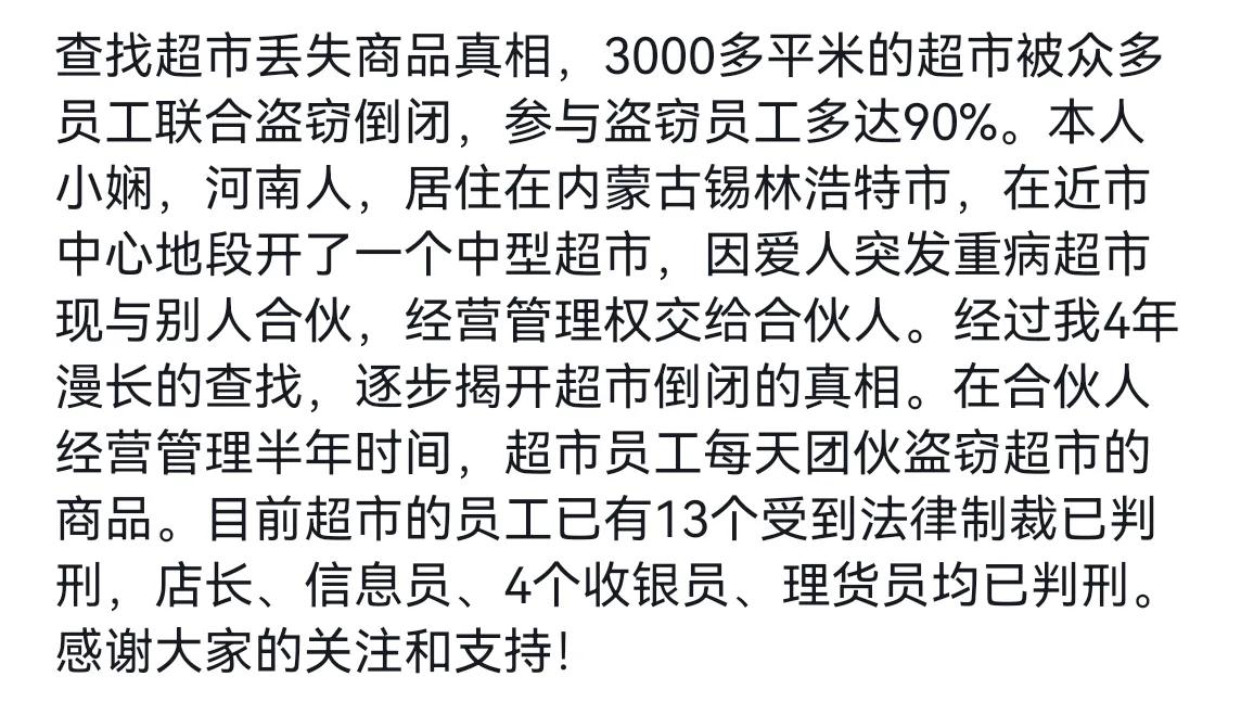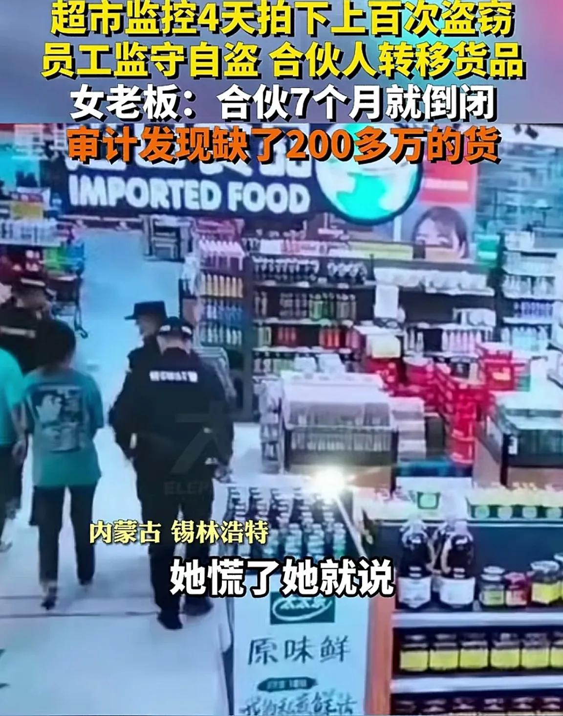 听说过超市个别员工偷吃偷喝的,整个超市员工都在偷超市货物的还是第一次见,甚至连合伙人都在偷盗转移货物!