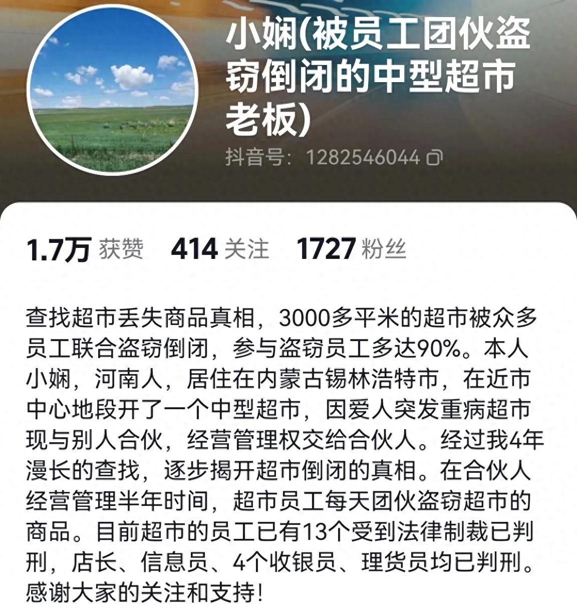 2019年,赵女士在内蒙古锡林浩特市近中心地段开了一家3000多平米的中型超市,2021年由于赵女士爱人身患重病,于是找了个合伙人共同经营,经营管理权交给了合伙人,结果仅仅过了七个月,在当年的8月8日,超市就因经营不善倒闭了!